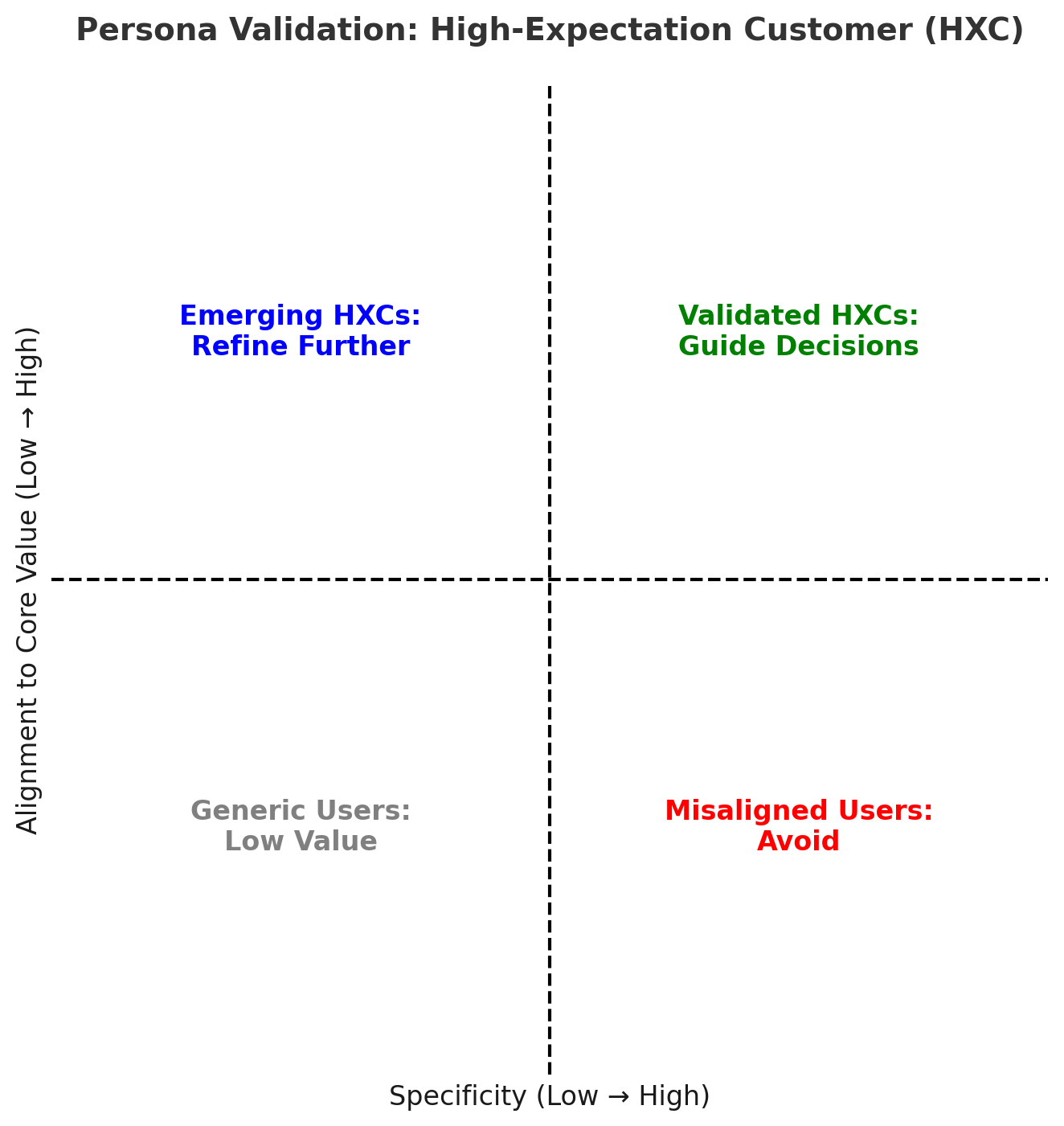 PM Tip: Your HXC is your North Star. Use customer data to define a persona that reflects the most demanding user in your market.
